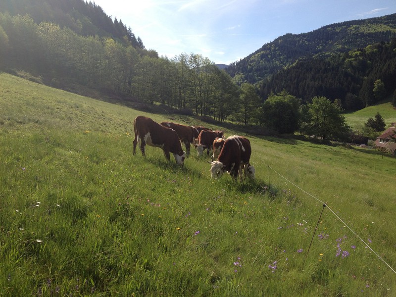 Entdecken Sie hochwertiges Fleisch von artgerecht gehaltenen Tieren und genießen sie ein unvergessliches Geschmackserlebnis. Unsere Rinder leben wie in der “guten alten Zeit” auf saftigen Weiden ausschließlich von frischem Gras und reinem Wasser aus dem Schwarzwald.Die Kälber werden im Alter von drei Monaten ausschließlich auf zertifizierten Bio Höfen zugekauft. Die ausgewachsenen Ochsen gehen in die Fleischvermarktung. Ab Hof wird zudem Fleisch in Bio-Qualität direkt vermarktet. Erkundigen Sie sich nach unserem nächsten Schlachttermin, wenn Sie auf Fleisch aus streng kontrollierter Biohaltung wert legen.